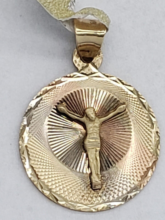 Round Real 14k 3 Tone White Rose Yellow Gold crucifix Jesus Pendant 1 inch long