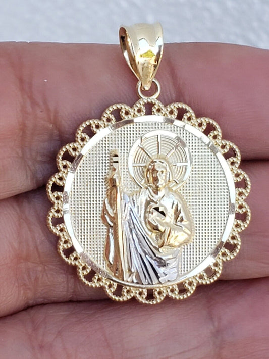 Solid 14k gold saint jude judas round pendant charm 1.45 inch long diamond cut