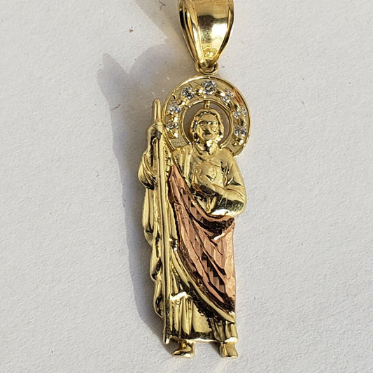 Real 10k yellow rose Gold Saint Jude judas Pendant charm 1.60 inch