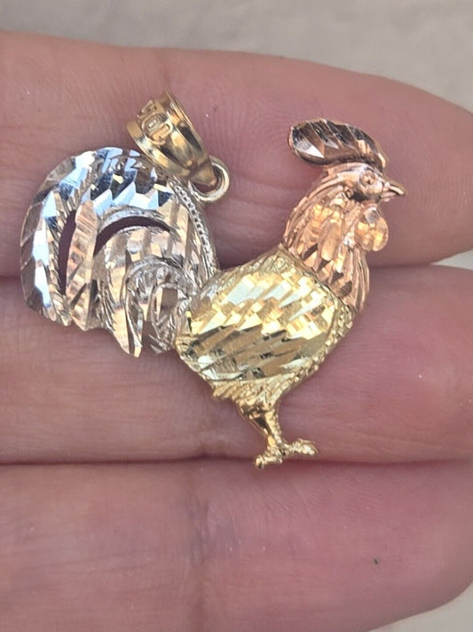 10k Gold rooster Pendant 1 inch long 3 Color