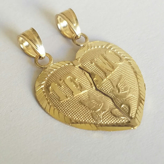 10k real solid Yellow Gold 2 piece Te Amo Split Heart Pendant Charm .90" long